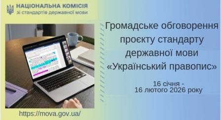 Громадське обговорення проєкту стандарту державної мовиОпублікував admin. Дата публікації 19/01/2026Теги: Загальні