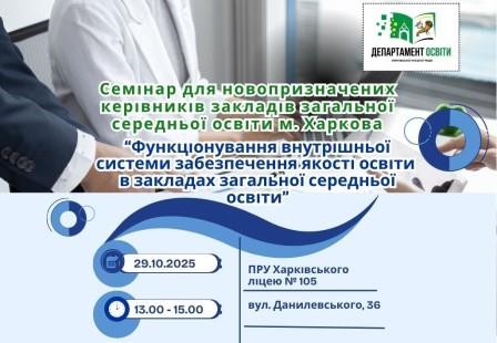 29 жовтня 2025 року відбувся важливий семінар для новопризначених керівників закладів загальної середньої освіти м. Харкова, що був організований Департаментом освіти та проведений у ПРУ ліцею № 105.