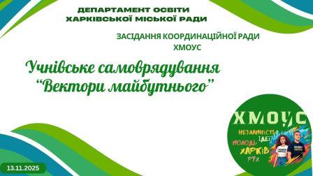 13 листопада 2025 року відбулося засідання Координаційної ради Харківської міської організації учнівського самоврядування (ХМОУС), що об’єднує 9 районних, які реалізують молодіжні ініціативи в місті-герої Харкові.
