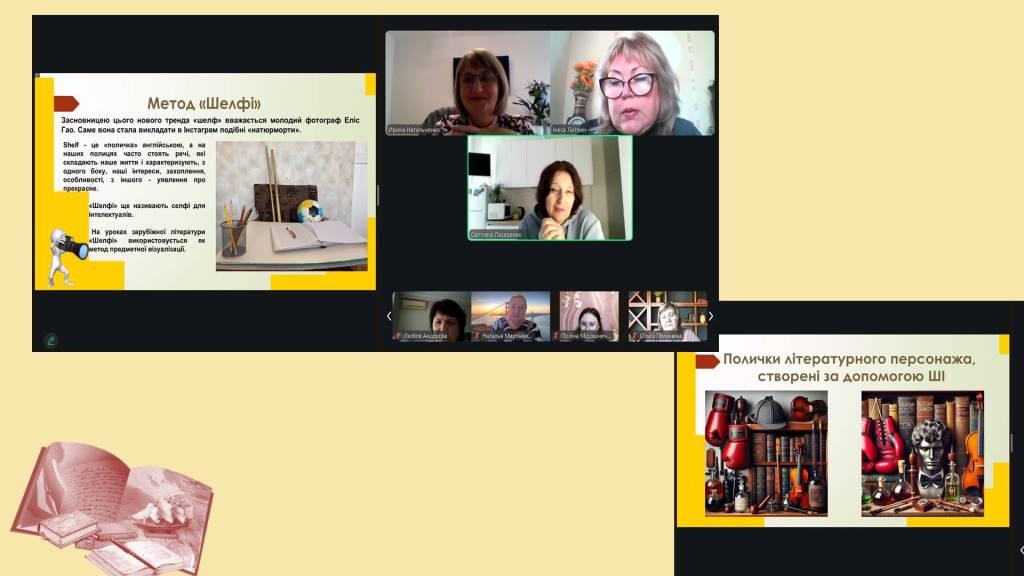 Метод «Шелфі» — як засіб предметної візуалізації. Демонструвалися приклади створення «шелфі» до біографії Роальда Дала, а також поличок літературних персонажів, створених за допомогою штучного інтелекту. Цей метод допомагає учням краще уявити оточення, інтереси та характер героїв і авторів.