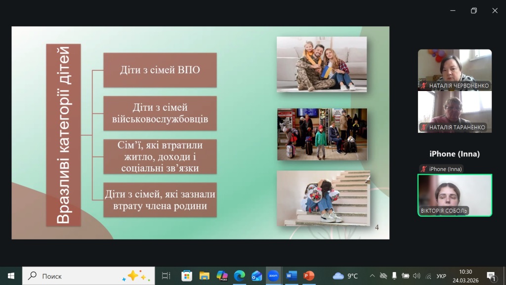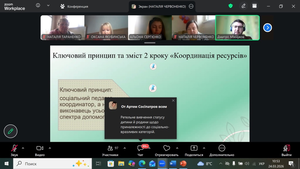 24 березня 2026 року Координаційний центр психологічної служби системи освіти міста Харкова на платформі ZOOM провів панораму методичних знахідок для 100 соціальних педагогів закладів освіти міста.